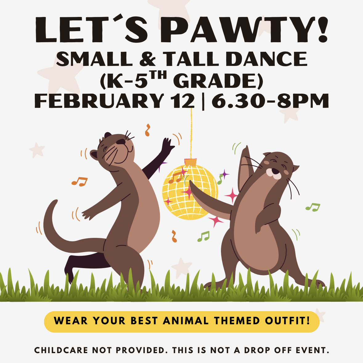 A special night just for our elementary students and their families… where the “Smalls” hit the dance floor with their “Talls”. Music, laughter, and memories that last long after the final song. This year our theme is “Let’s Pawty” to honor our love for animals, so get your wild outfits ready!